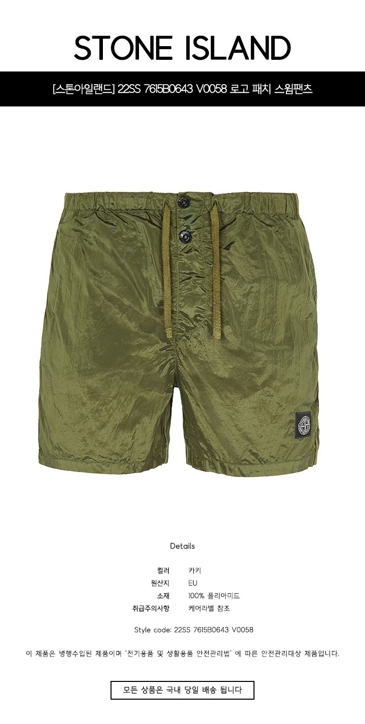 [명품] 22SS 7615B0643 V0058 로고 패치 스윔팬츠 카키 남성 팬츠 /
