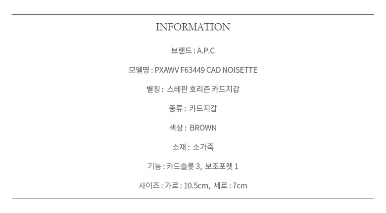 아페쎄 PXAWV F63449 CAD NOISETTE STEFAN 스테판 호리즌 카드지갑