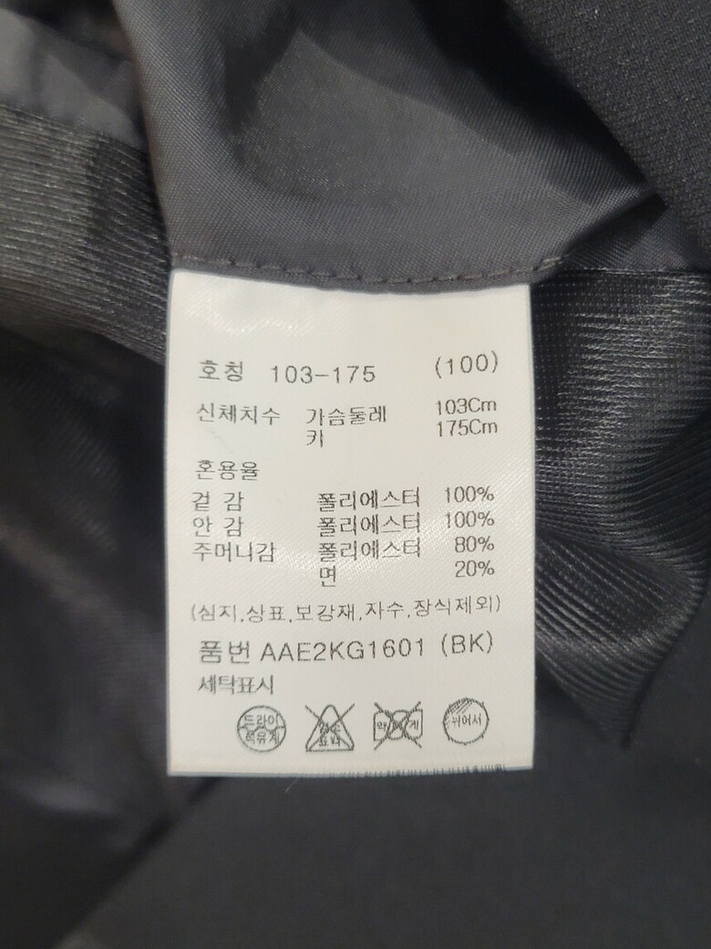 | 1. 제품 소재 (섬유의 조성 또는 혼용률을 백분율로 표시, 기능성인 경우 성적서 또는 허가서) | 겉감:폴리에스테르 100% |