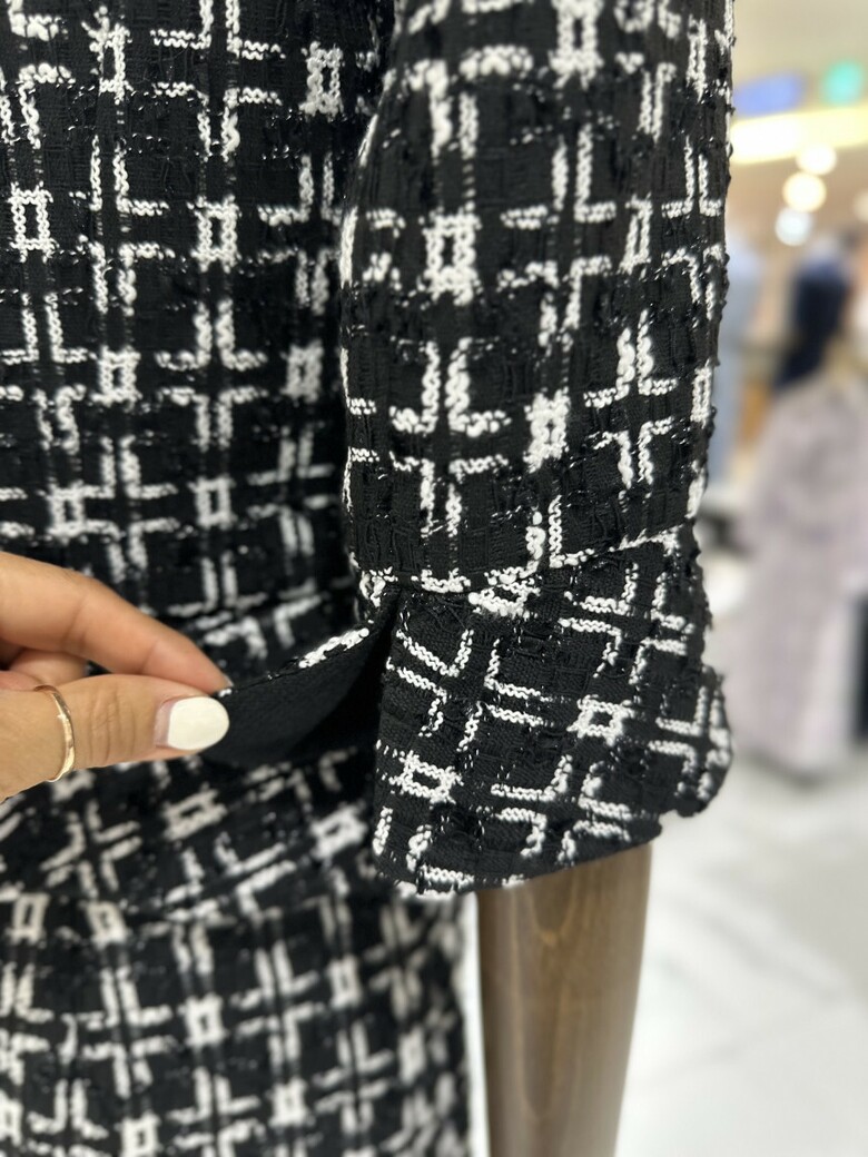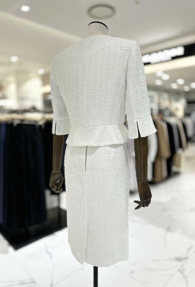 모조에스핀만의 고급스러운 트위드 소재와 깔끔한 노카라 디자인이 조화롭게 어우러져 세련된 분위기를 연출해 줍니다. 결혼식이나 중요한 모임 등 특별한 날에 입어보세요.
