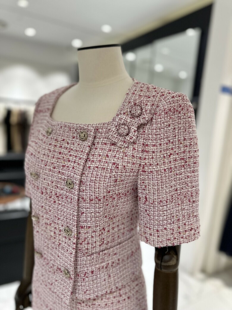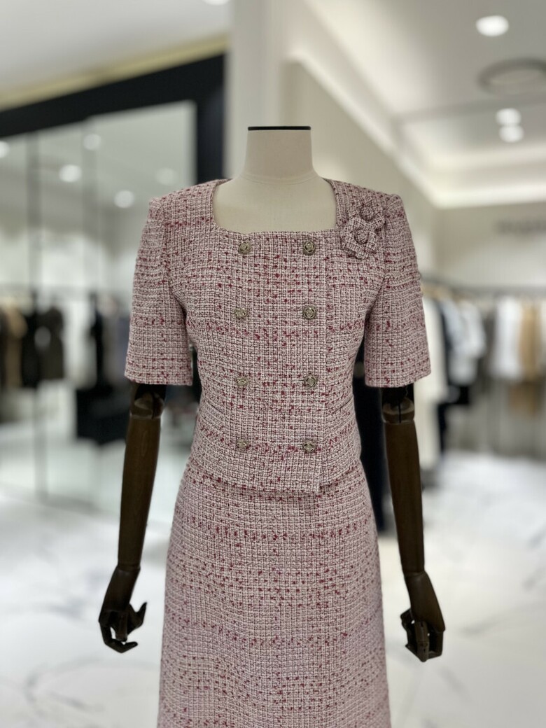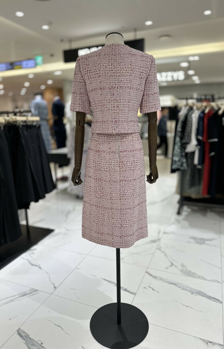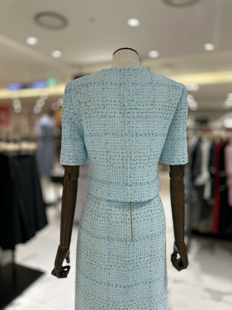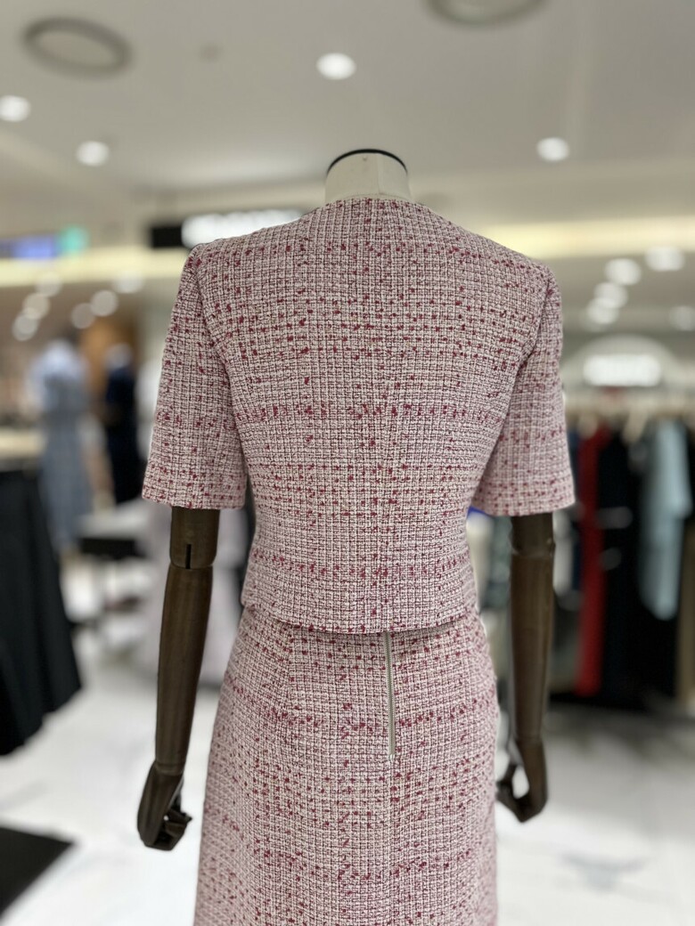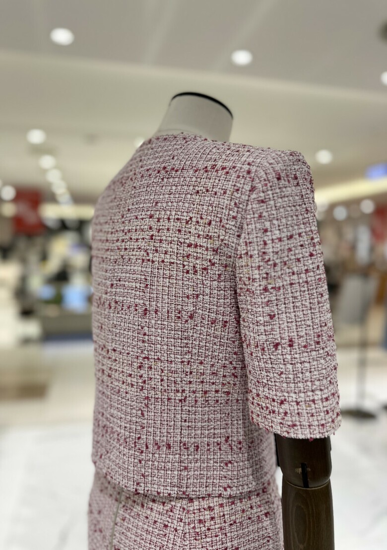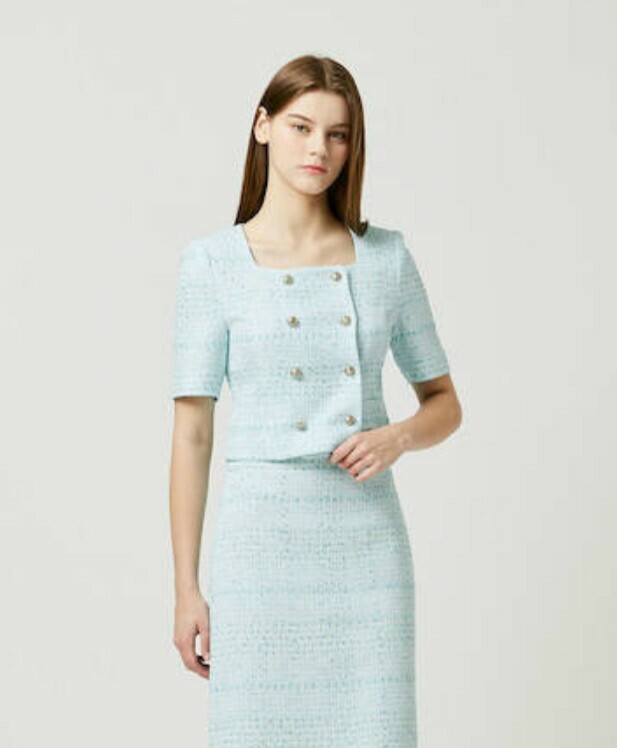 트위드 소재의 반팔 재킷으로 고급스럽고 여성스러운 분위기를 연출해 줍니다. 결혼식이나 각종 행사 등 격식 있는 자리에서 고급스러운 룩을 연출하고 싶을 때 착용해 보세요.