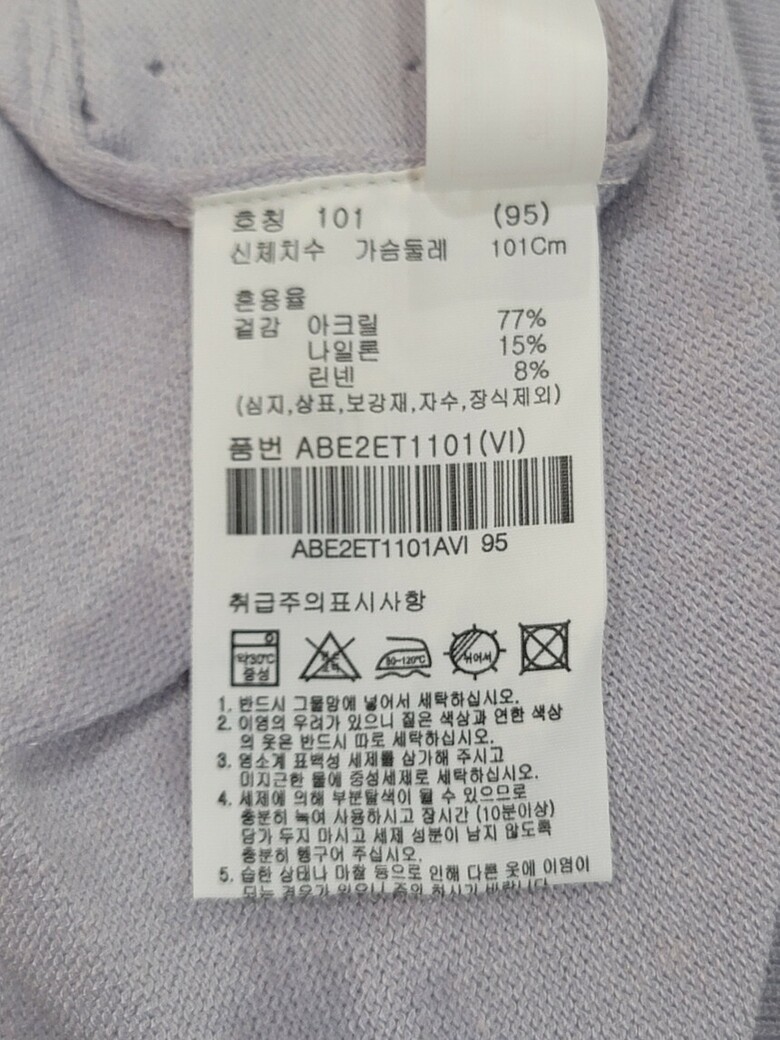 | 1. 제품 소재 (섬유의 조성 또는 혼용률을 백분율로 표시, 기능성인 경우 성적서 또는 허가서) | 겉감:아크릴 77%, 나일론 15%, 린넨 8% |