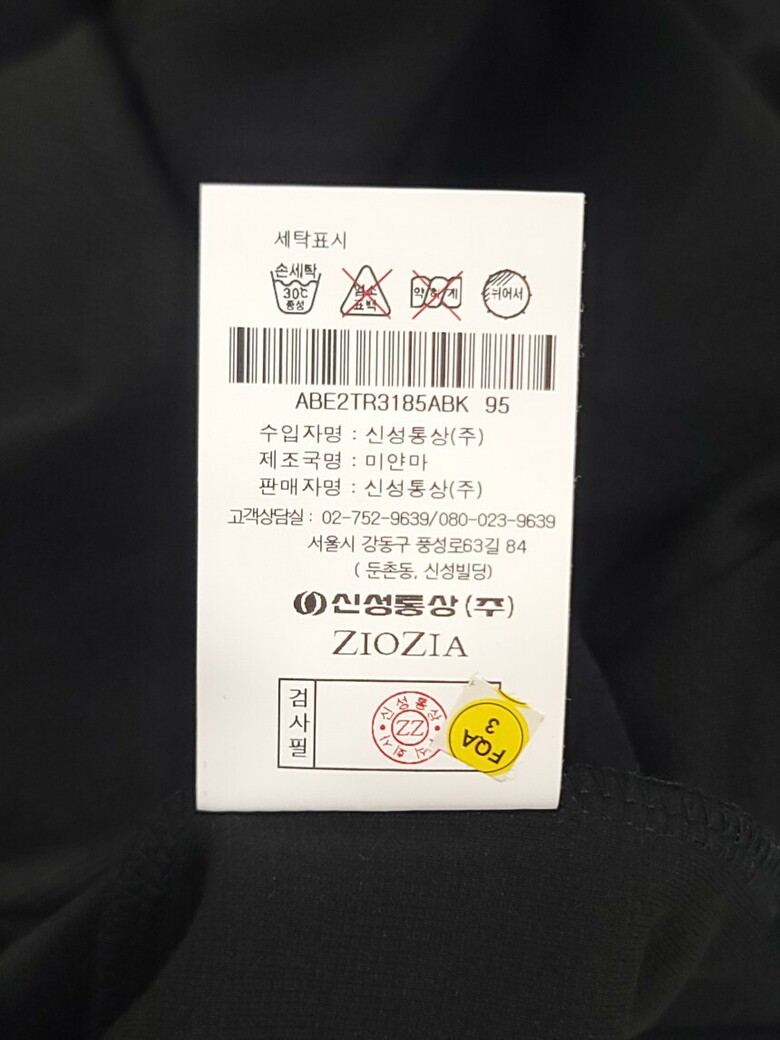 | 1. 제품 소재 (섬유의 조성 또는 혼용률을 백분율로 표시, 기능성인 경우 성적서 또는 허가서) | 겉감:폴리에스테르 58%, 면 38%, 폴리우레탄 4% |