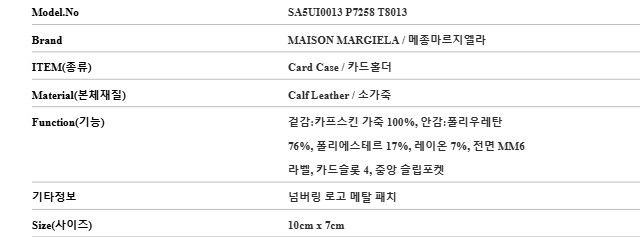 [명품] 메종마르지엘라 SA5UI0013 P7258 T8013 MM6 넘버링 로고 메탈 패치 카드지갑