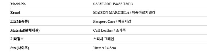 - #리본즈코리아 #SA3VL0001P4455T8013 #[명품] #메종마르지엘라 #SA3VL0001 #P4455 #T8013 #스티치 #그레인 #여권지갑 #남성 #지갑 #반지갑