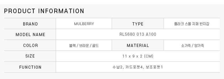 [명품] 멀버리 RL5680 013 A100 플라크 그레인 스몰 반지갑