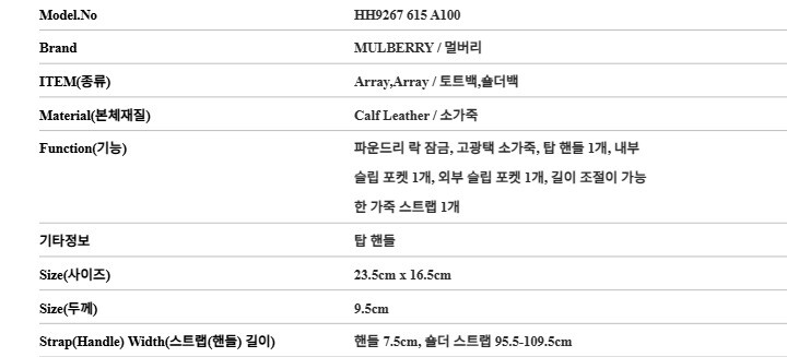 [명품] 멀버리 라나 탑 핸들 토트백 블랙 HH9267 615 A100