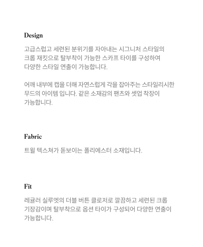 | 1. 제품 소재 (섬유의 조성 또는 혼용률을 백분율로 표시, 기능성인 경우 성적서 또는 허가서) | 상품상세참조 |