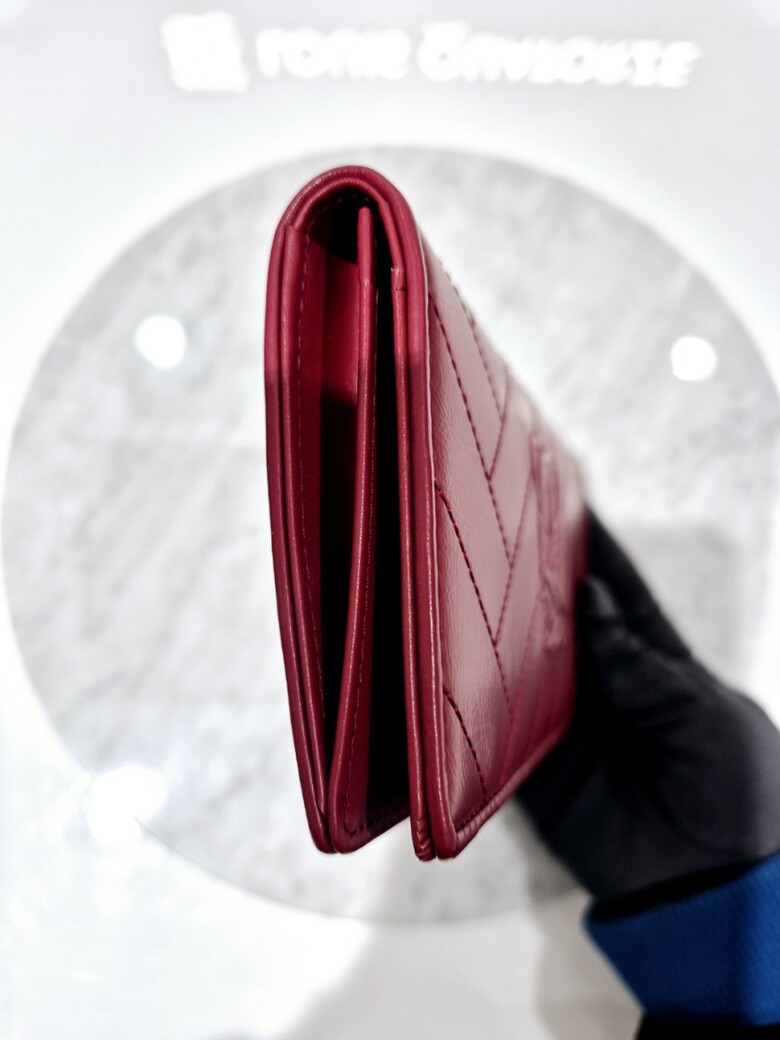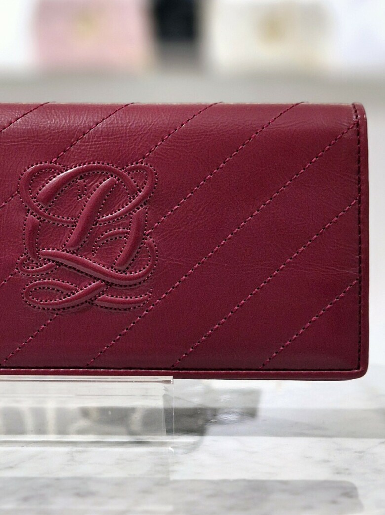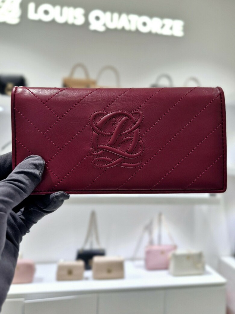 볼륨감있는 심볼 자수가 포인트 되는 페미닉 무드의 크랙 소재 장지갑.