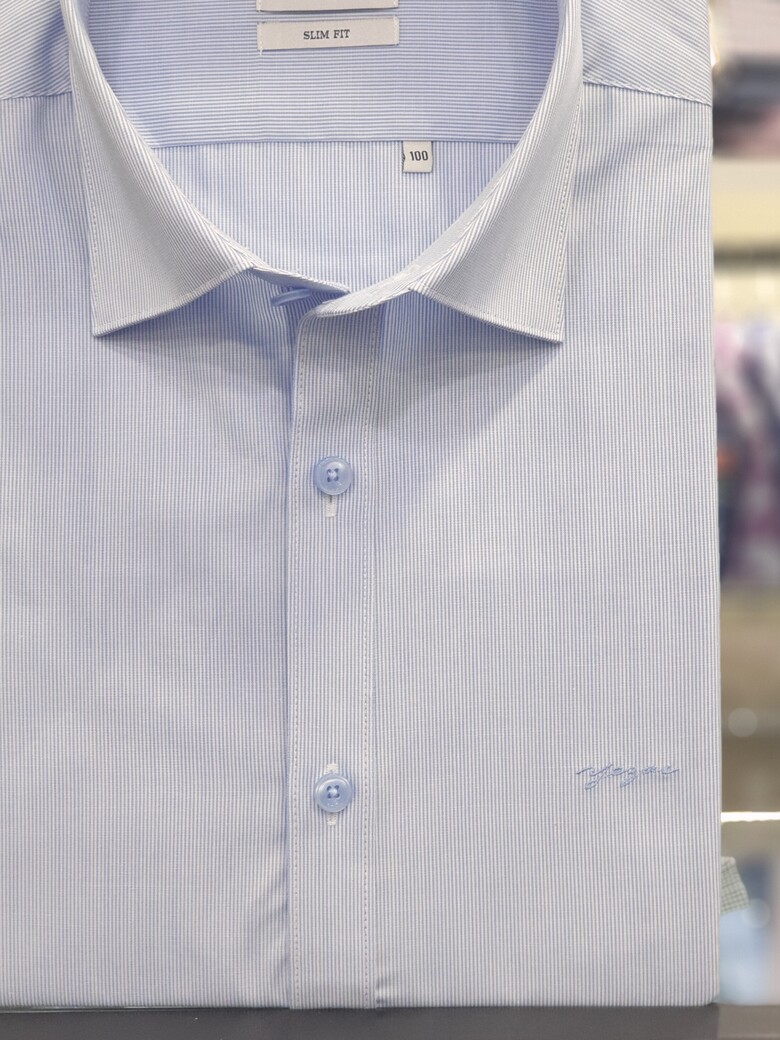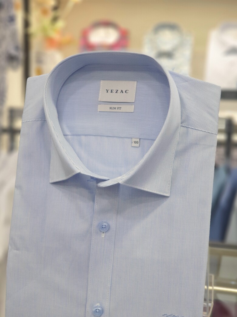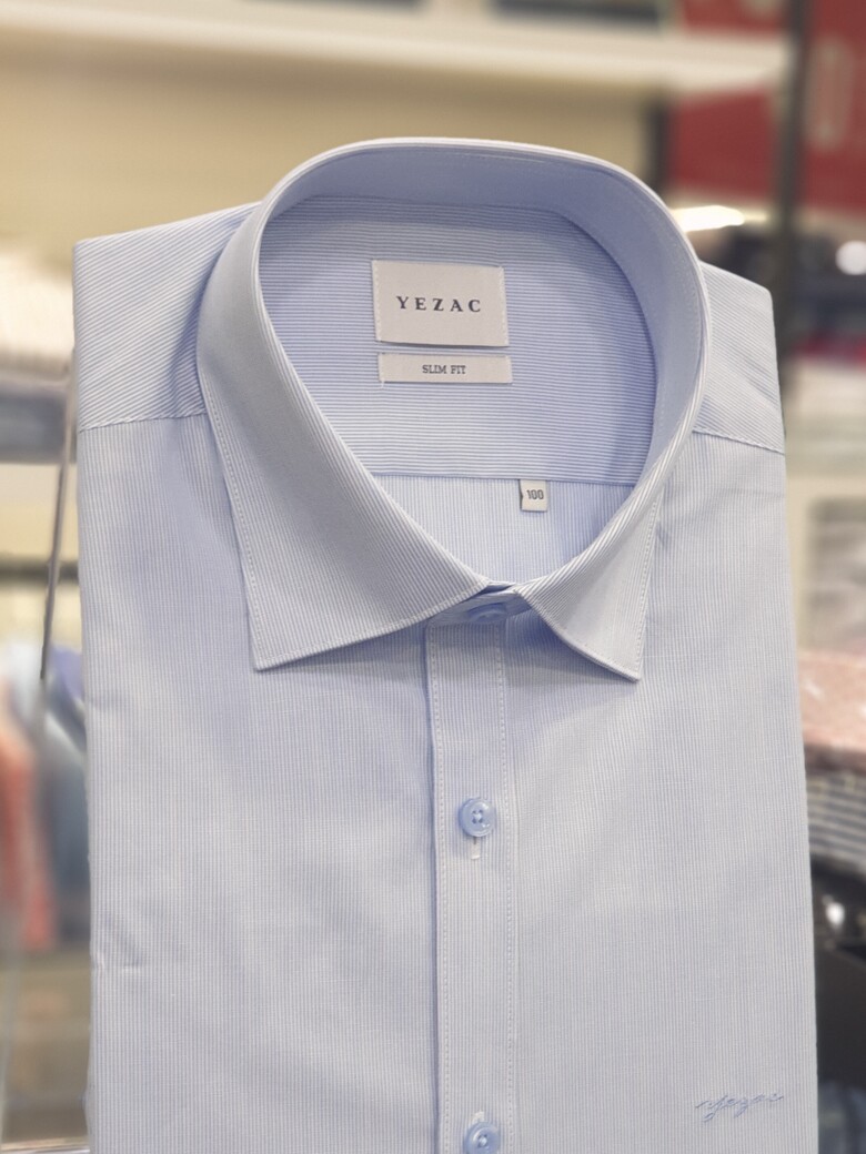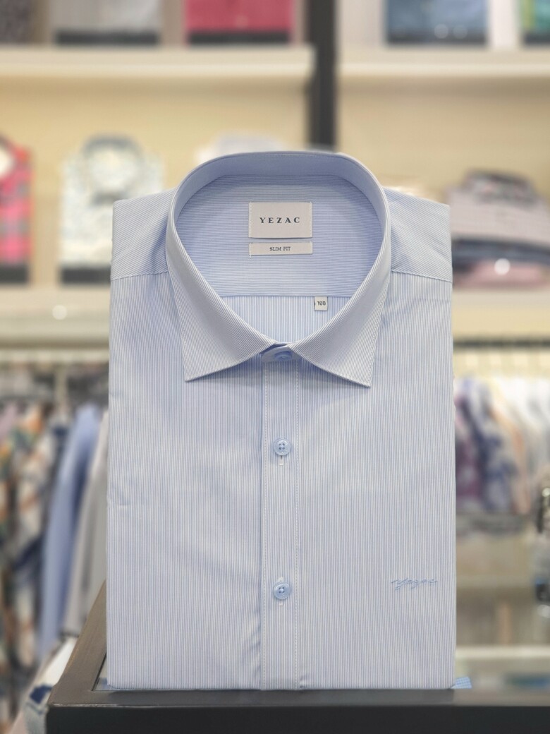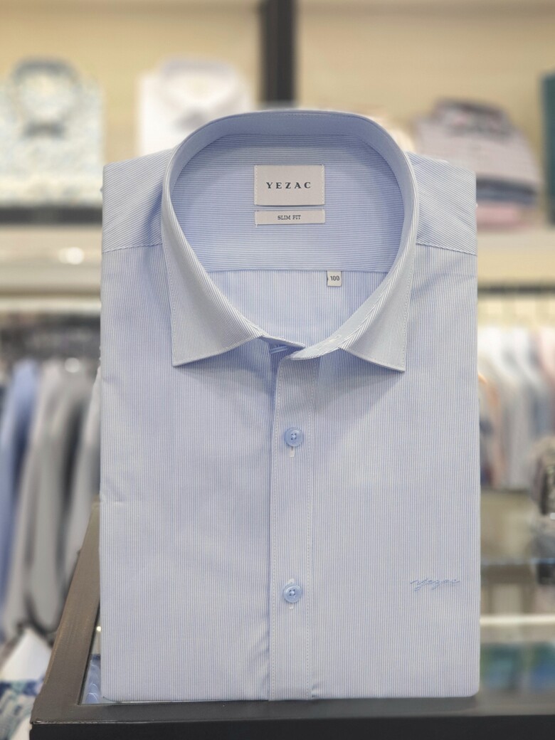 [예작셔츠] 반소매 면혼방 핀스트라이프 슬림핏셔츠 YJ4MBS255BL