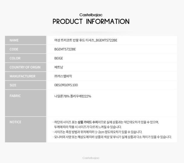 | 1. 품명 및 모델명 | 여성 후드 반팔 셔츠 |