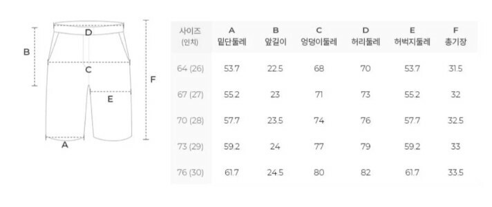 사이즈 : 64(25),67(26),70(27~28),73(28~29),76(30)