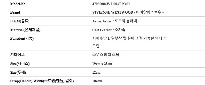 - #리본즈코리아 #47030004WL003TN401 #[명품] #비비안웨스트우드 #47030004W #L003T #N401 #베티 #스무스 #레더 #스몰 #토트백 #여성 #가방/핸드백