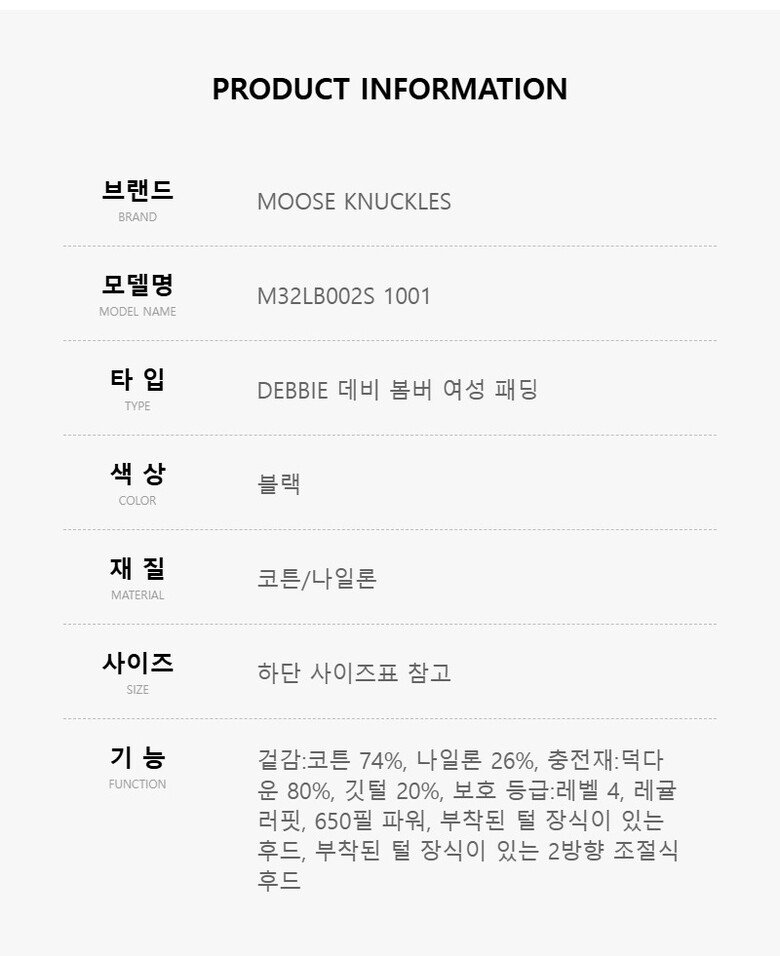 [명품] 무스너클 M32LB002S 1001 DEBBIE 데비 봄버 여성 패딩