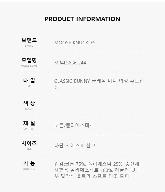 - #리본즈코리아 #M34LS636244 #[명품] #무스너클 #M34LS636 #244 #CLASSIC #BUNNY #클래식 #버니 #여성 #후드집업 #의류 #아우터 #집업후드