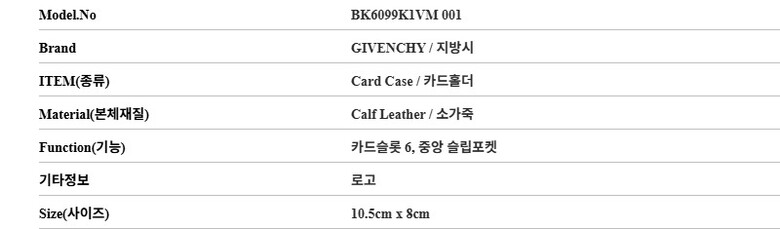 #리본즈코리아 #BK6099K1VM001 #[명품] #지방시 #BK6099K1VM #001 #4G #로고 #카드지갑 #남성 #지갑 #카드/명함지갑 #카드지갑홀더