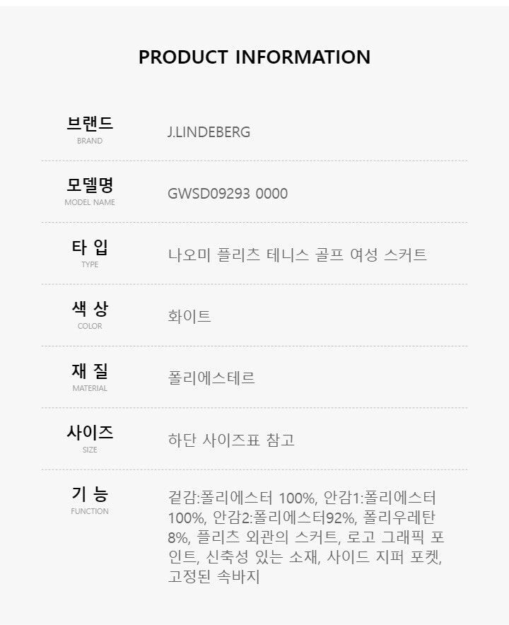 [명품] 제이린드버그 GWSD09293 0000 나오미 플리츠 테니스 골프 여성 스커트