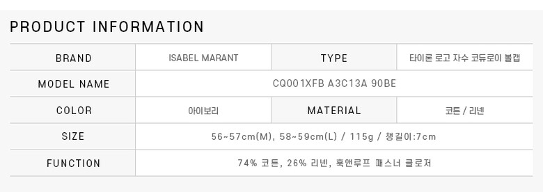 - #리본즈코리아 #CQ001XFBA3C13A90BE #[명품] #이자벨마랑 #CQ001XFB #A3C13A #90BE #TYRON #타이론 #로고 #자수 #코듀로이 #볼캡 #여성 #패션잡화 #모자 #야구모자