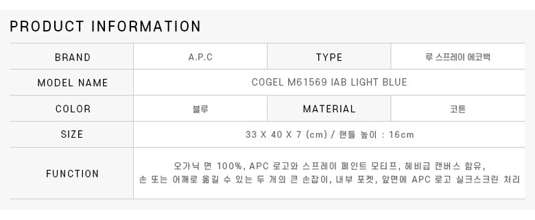 [명품] 아페쎄 COGEL M61569 IAB LIGHT BLUE LOU 루 스프레이 에코백