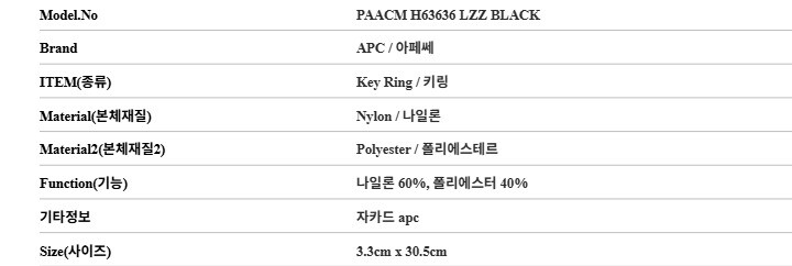 - #리본즈코리아 #PAACMH63636LZZBLACK #[명품] #아페쎄 #PAACM #H63636 #LZZ #BLACK #자카드 #apc #키링 #남성 #패션잡화 #키액세서리