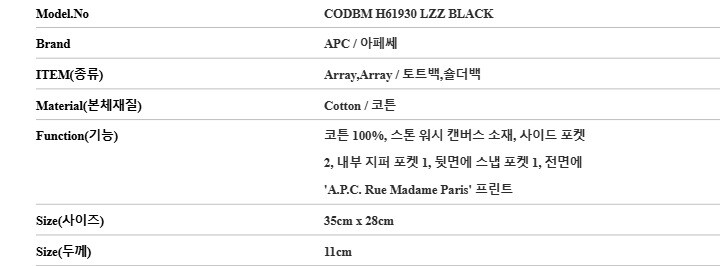 [명품] 아페쎄 CODBM H61930 LZZ BLACK RECUPERATION 리쿠퍼레이션 토트백