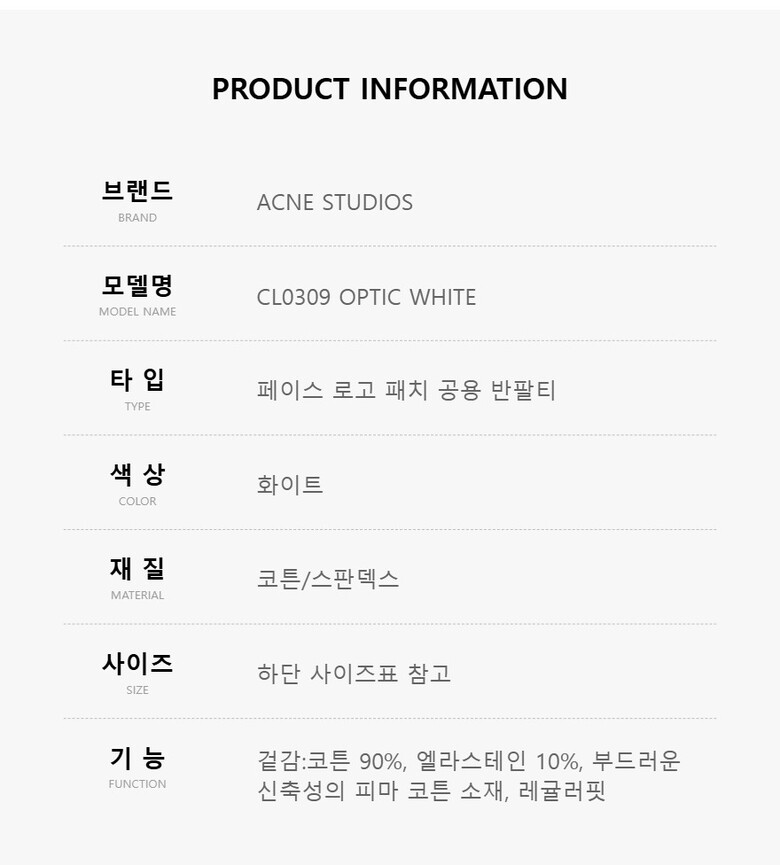 - #리본즈코리아 #CL0309OPTICWHITE #[명품] #아크네스튜디오 #CL0309 #OPTIC #WHITE #183 #페이스 #로고 #패치 #공용 #반팔티 #남성 #의류 #상의 #티셔츠