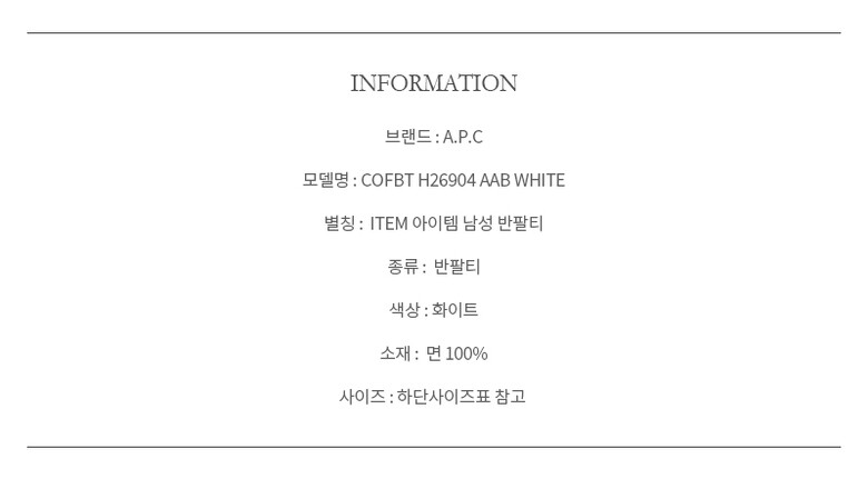 #리본즈코리아 #COFBTH26904AABWHITE #[명품] #아페쎄 #COFBT #H26904 #AAB #WHITE #ITEM #아이템 #남성 #반팔티 #의류 #상의 #티셔츠