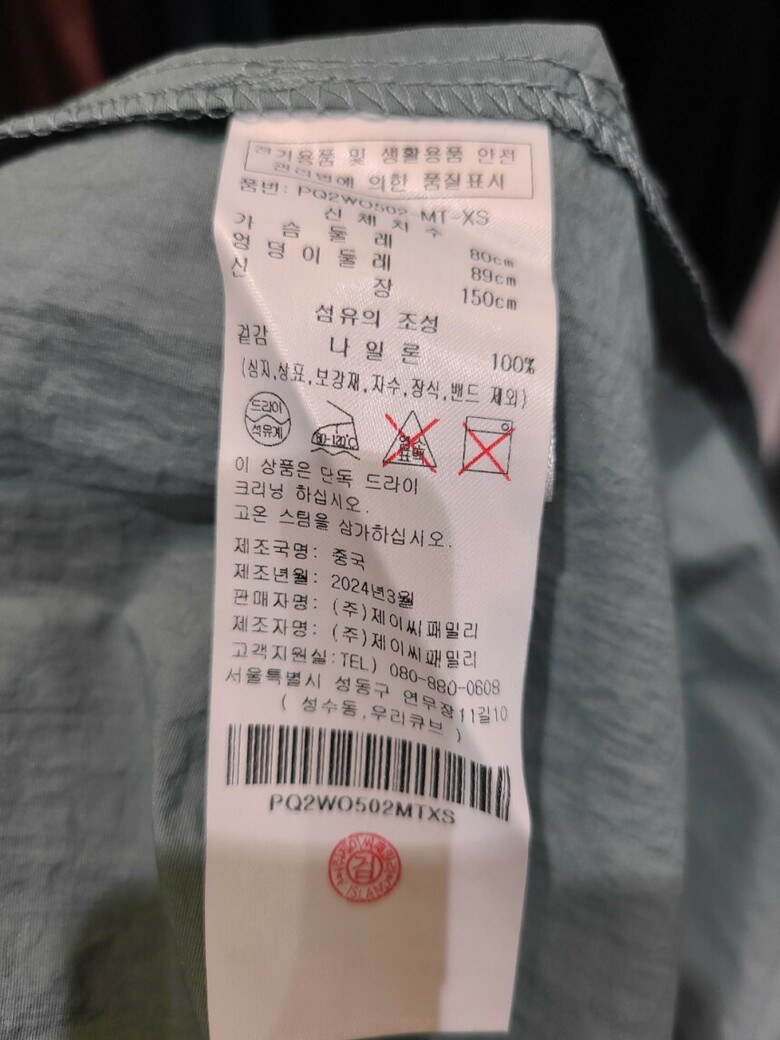 | 1. 제품 소재 (섬유의 조성 또는 혼용률을 백분율로 표시, 기능성인 경우 성적서 또는 허가서) | 겉감:나일론 100% |