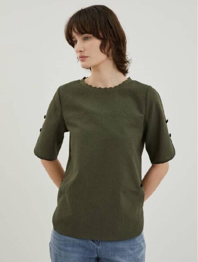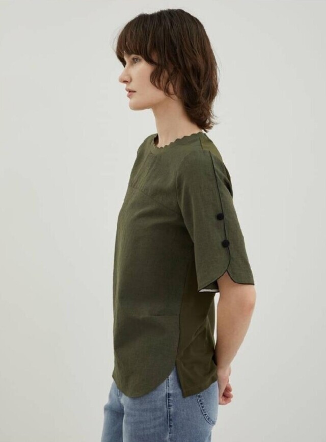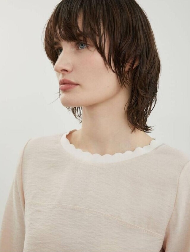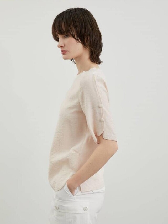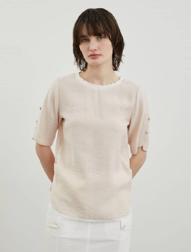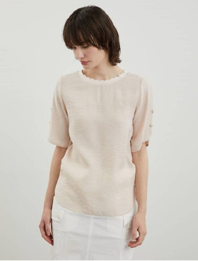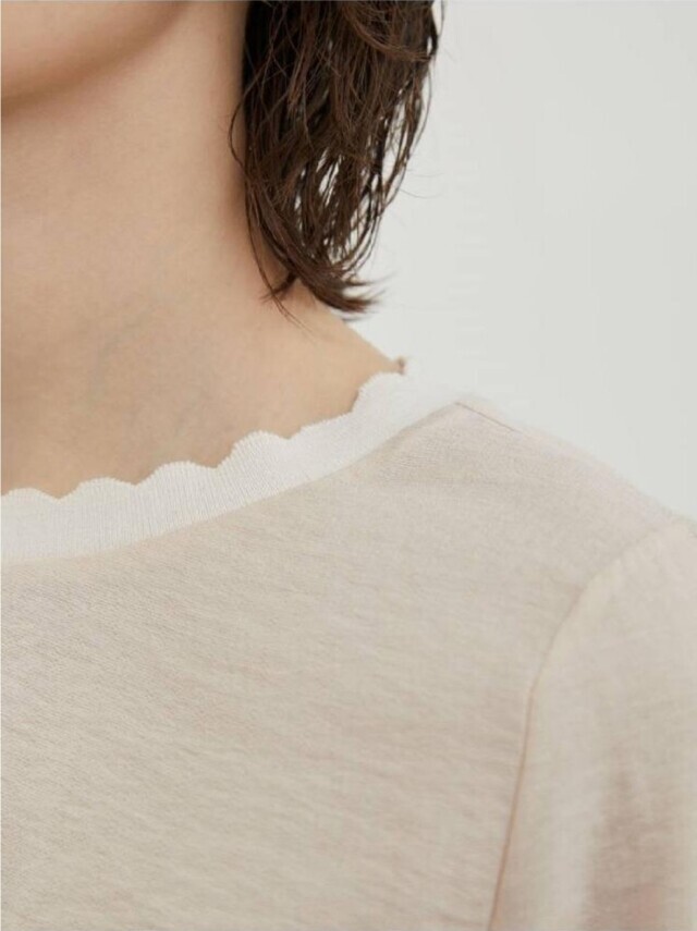 [올리비아로렌]스칼렛 니트패턴 블라우스형 티셔츠VOCAS4M4241