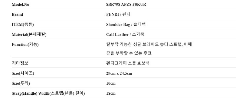 - #리본즈코리아 #8BR798APZ8F0KUR #[명품] #펜디 #8BR798 #APZ8 #F0KUR #펜디그래피 #스몰 #호보백 #숄더백 #여성 #가방/핸드백 #숄더백/호보백