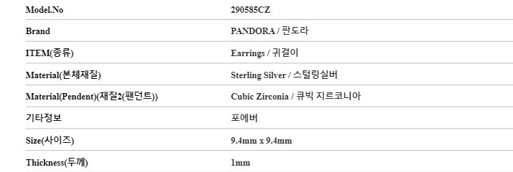 [명품] 판도라 290585CZ 시그니처 포에버 실버 귀걸이
