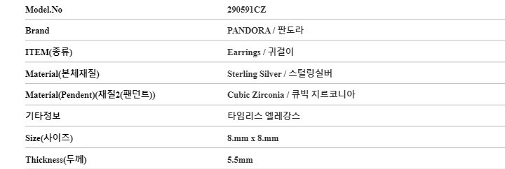 [명품] 판도라 290591CZ 타임리스 엘레강스 스터드 실버 귀걸이