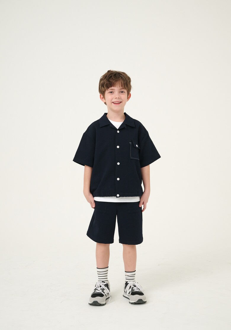 시원한 촉감이 좋은 면 시어서커 소재를 사용하여 다양한 스타일링을 연출할 수 있는 셔츠입니다.