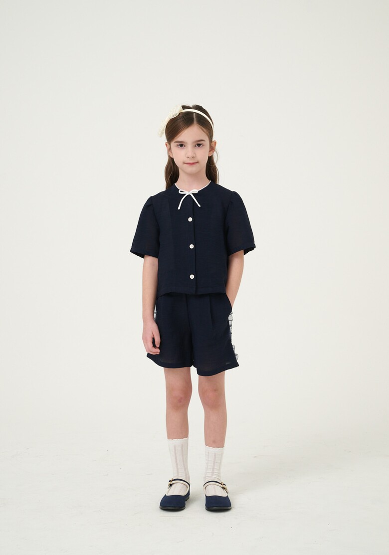 고급스러운 소재감이 돋보이는 네이비 컬러 반바지입니다.