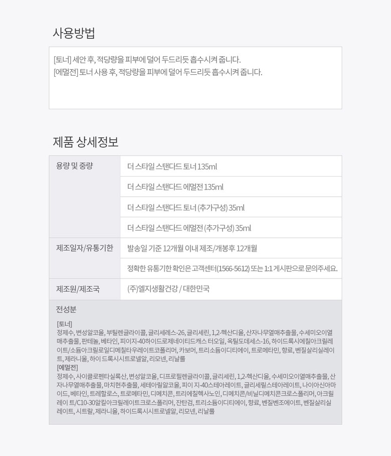 3. 제조연월과 사용기한 | 주문 시점으로부터 최근 1년 이내에 제조된 상품으로 배송/제조일로부터 36개월/개봉후 1년 이내 사용 |