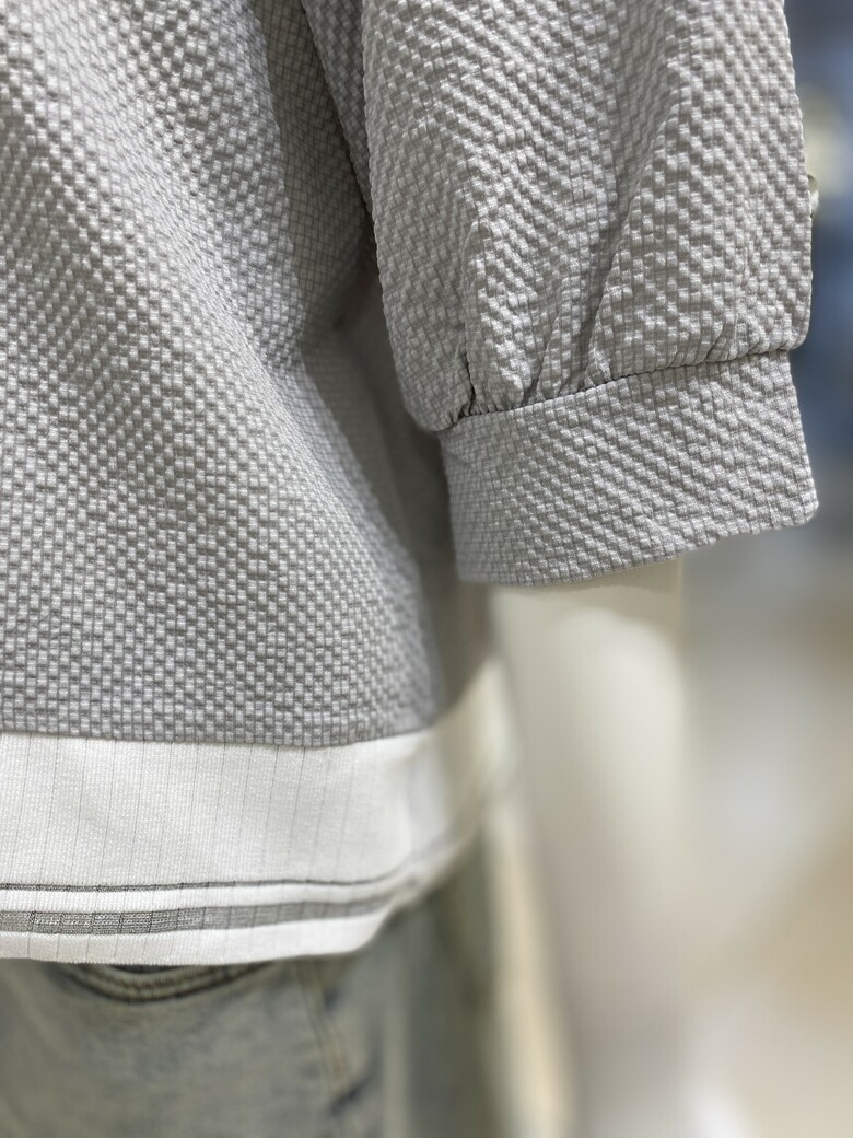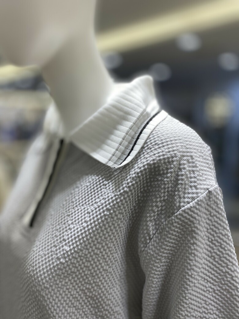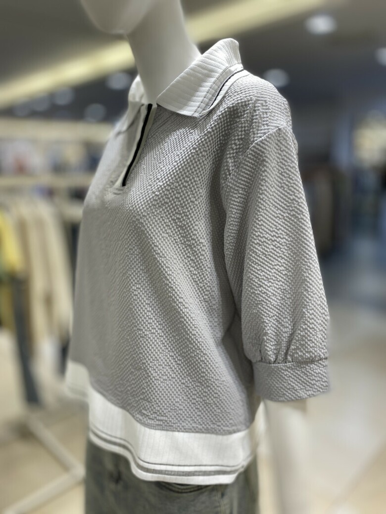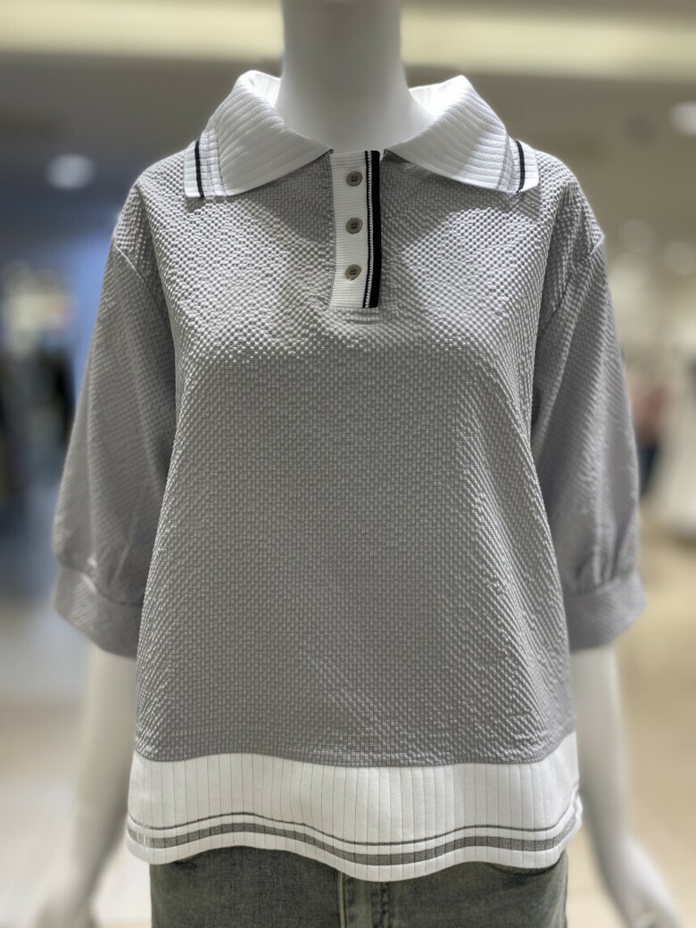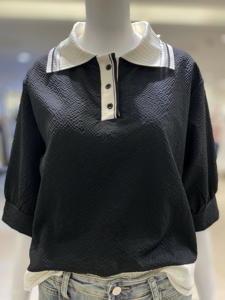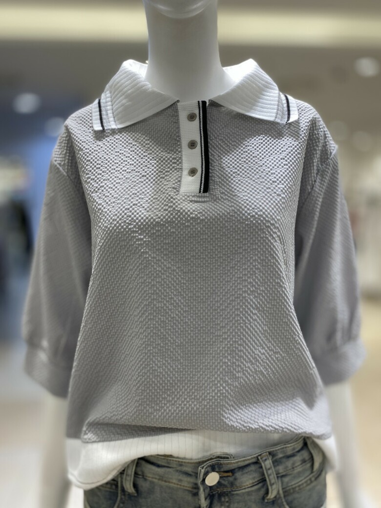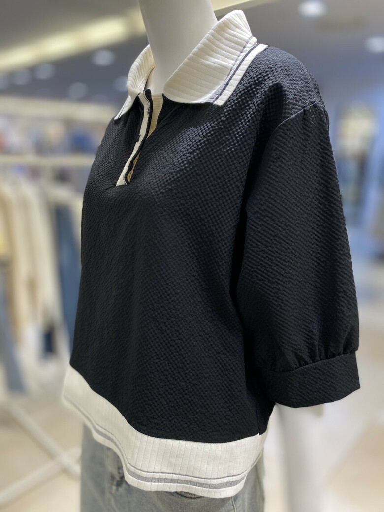 배색 카라 엠보 티셔츠