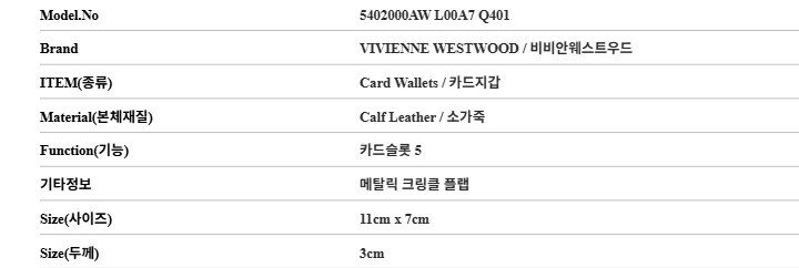 [명품] 5402000AW L00A7 Q401 여성 카드지갑