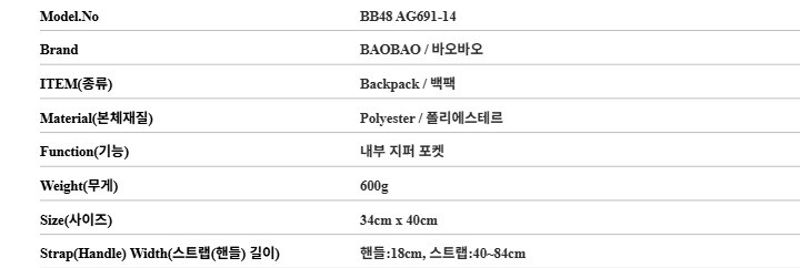 [명품] 바오바오 BB48 AG691 14 플랫 팩 백팩