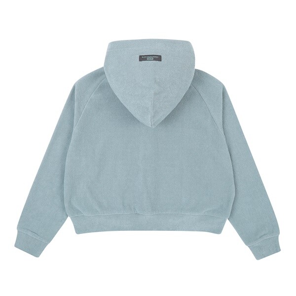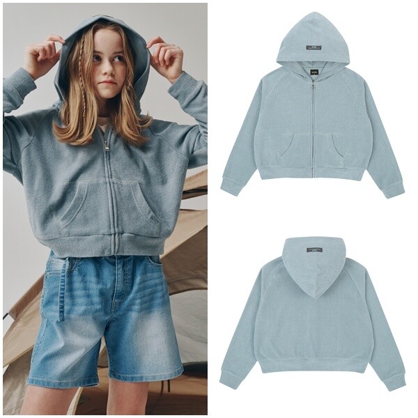 유니크한 민트 컬러로 제안한 부드러운 촉감의 테리지 크롭 후드 집업입니다.