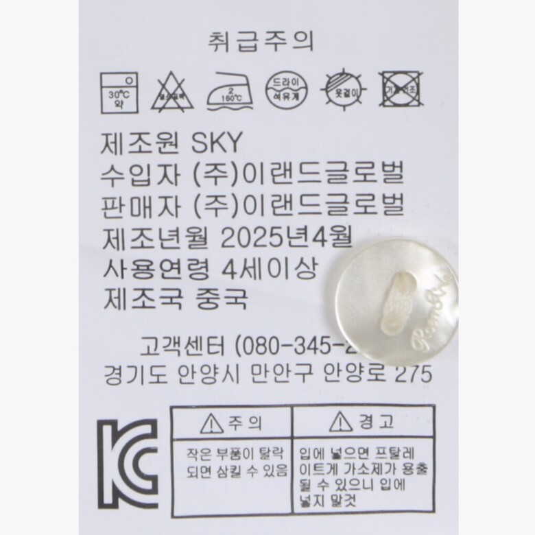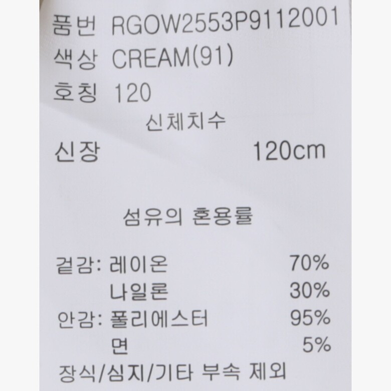 | 1. 제품 소재 (섬유의 조성 또는 혼용률을 백분율로 표시, 기능성인 경우 성적서 또는 허가서) | 상품상세참조 |