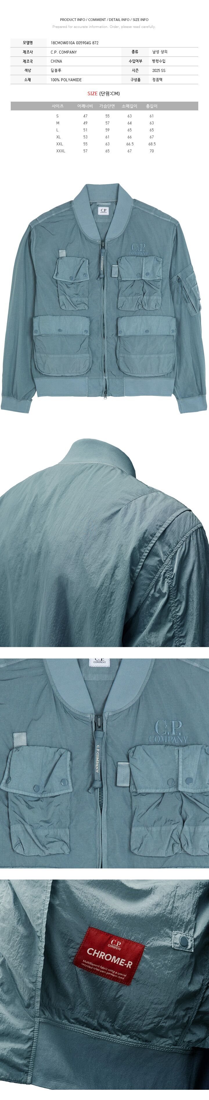 - #리본즈코리아 #9261004-530176113 #[명품] #CP #25SS #로고 #자수 #멀티 #포켓 #크롬 #R #자켓 #딥블루 #18CMOW010A #005904G #872 #남성 #의류 #아우터 #집업후드