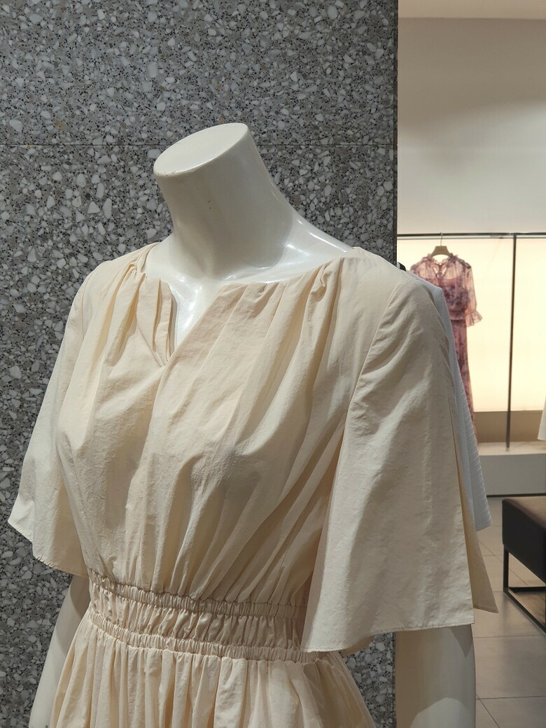 슬리브, 스커트 턱 디테일로 입체감을 더해주는 원피스입니다.