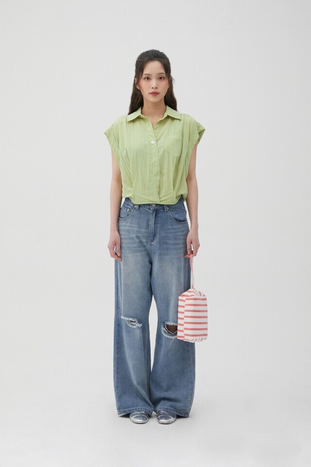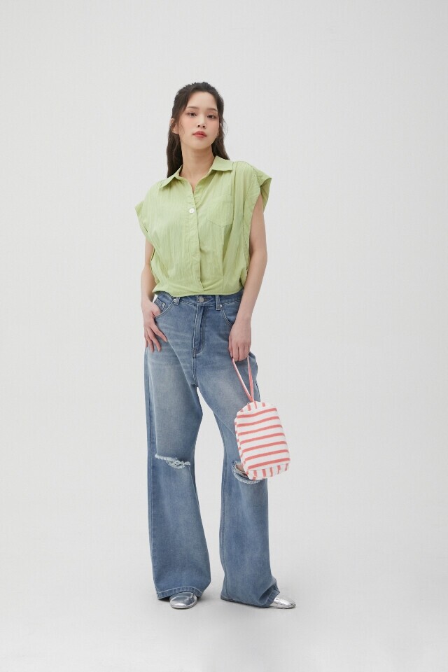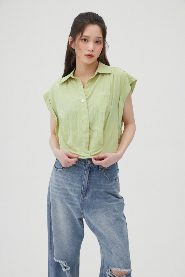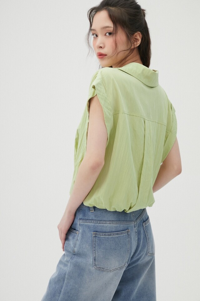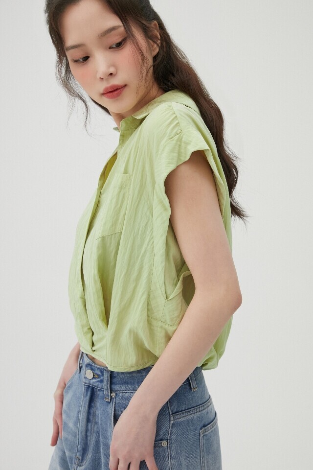 AQ2WB420 캡 소매 포켓 셔츠형 블라우스