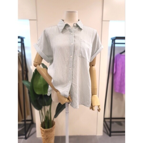 KEBLO601MT_바바 반팔 기본 블라우스 민트
