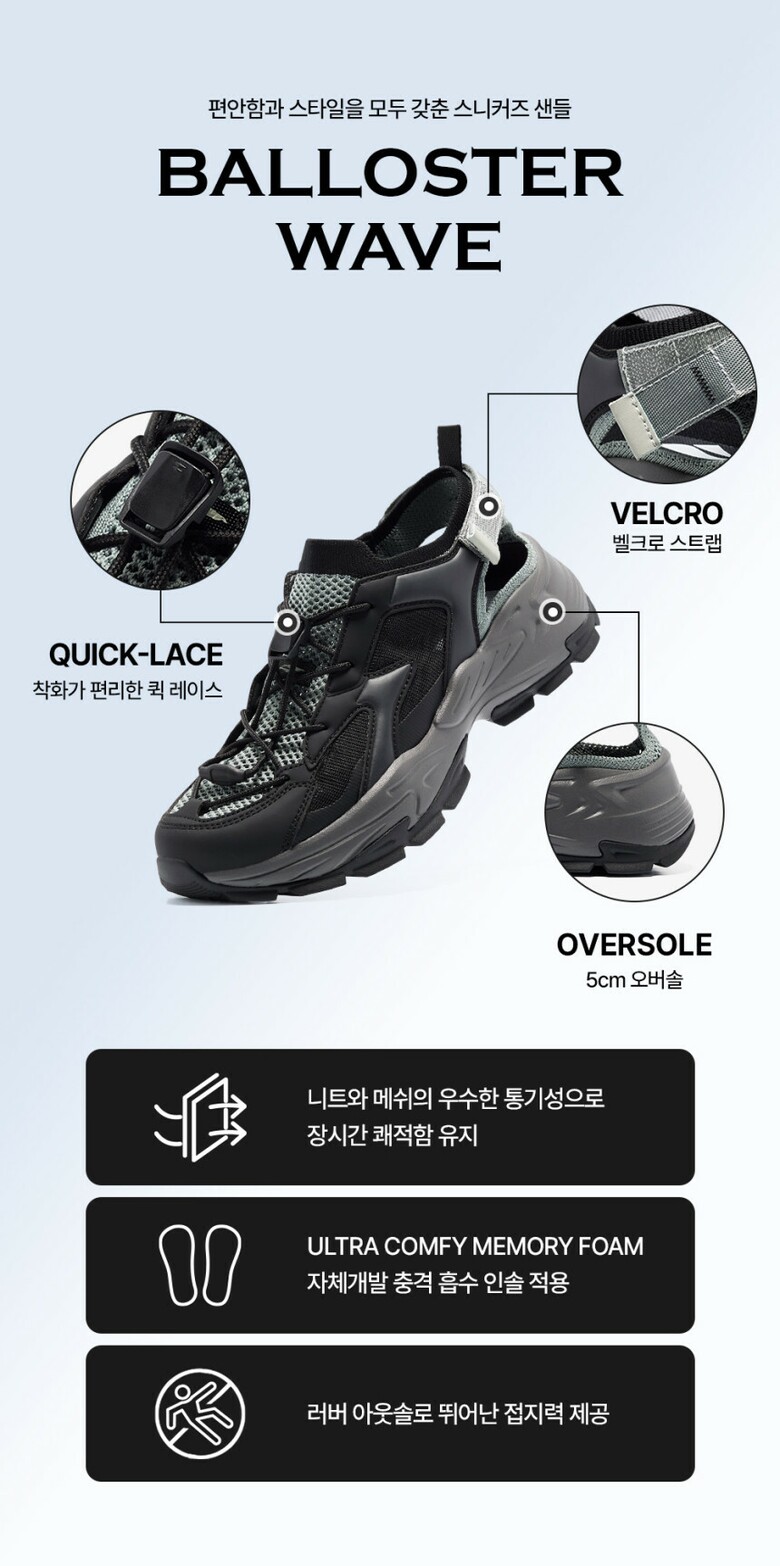 밸롭 남여공용 쿠션샌들 밸로스터 웨이브 화이트 BC2LSAU001WT