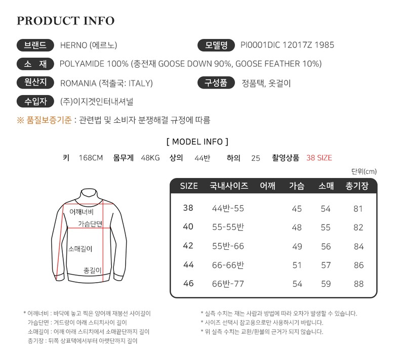 | 1. 제품 소재 (섬유의 조성 또는 혼용률을 백분율로 표시, 기능성인 경우 성적서 또는 허가서) | 상세페이지 참조 |