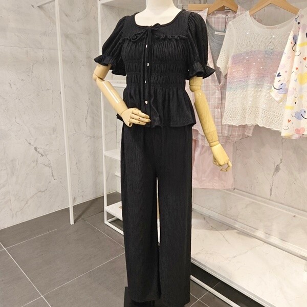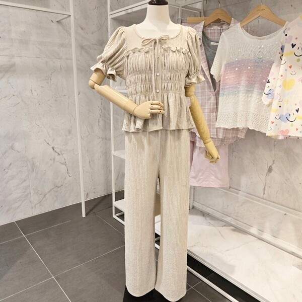 치수 : FREE / 상의-?가슴단면 41cm,길이 47cm , 하의- 허리단면 33cm,길이 103cm