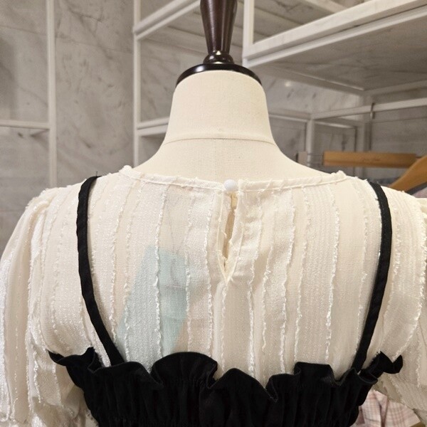 `섬유 특유의 냄새, 마 소재에 올 뭉침, 니트 소재에 특성상 실이 올라와있거나 마감선이 튀어나와있을때 약간의 이염, 잡사, 이중박음 있을수 있으며 이는 불량으로 취급하지 않습니다