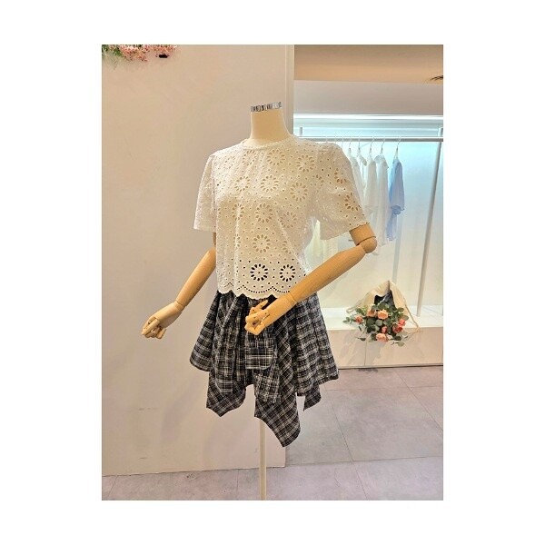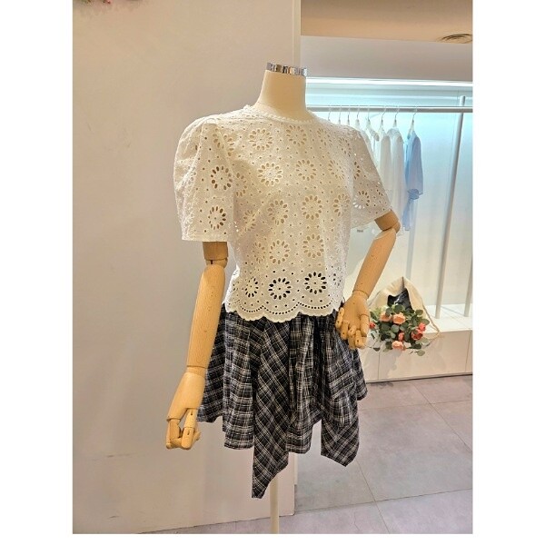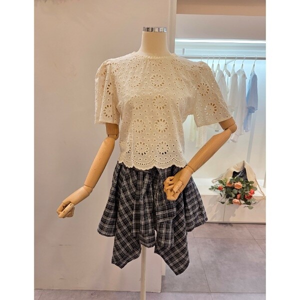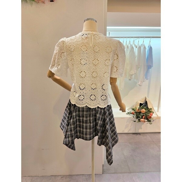 CP5WBL38_소매퍼프 펀칭 블라우스