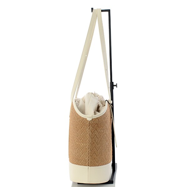 합성 라피아 원단과 인조 가죽 콤비의 핫섬머 쇼퍼 아이템